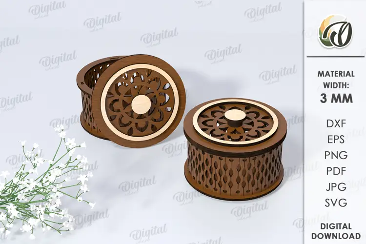 Caja de baratijas redonda pequeña 3D cortada a láser. Cajas de regalo redondas SVG